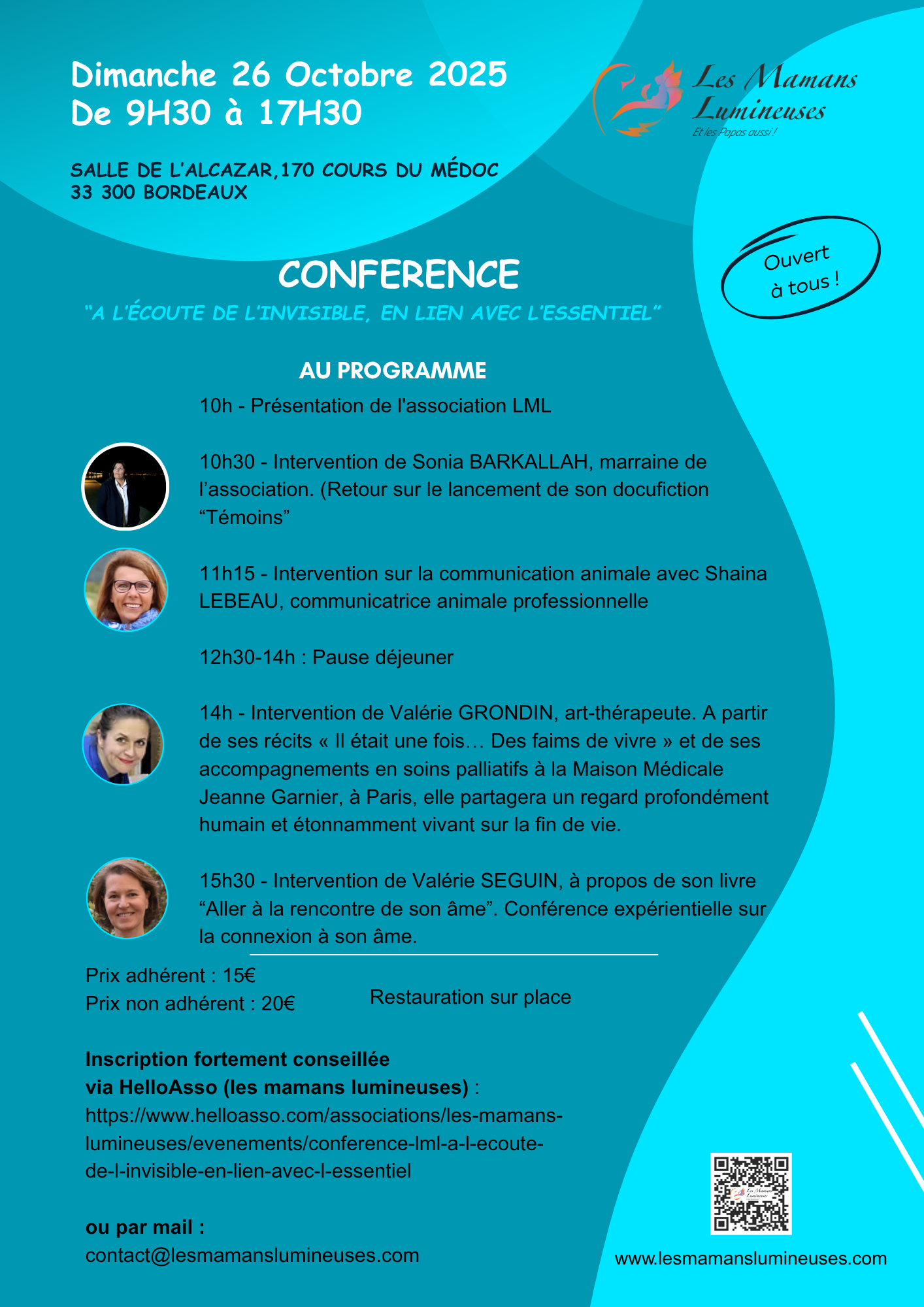 • HelloAsso : https://www.helloasso.com/associations/les-mamans-lumineuses/evenements/conference-lml-a-l-ecoute-de-l-invisible-en-lien-avec-l-essentiel