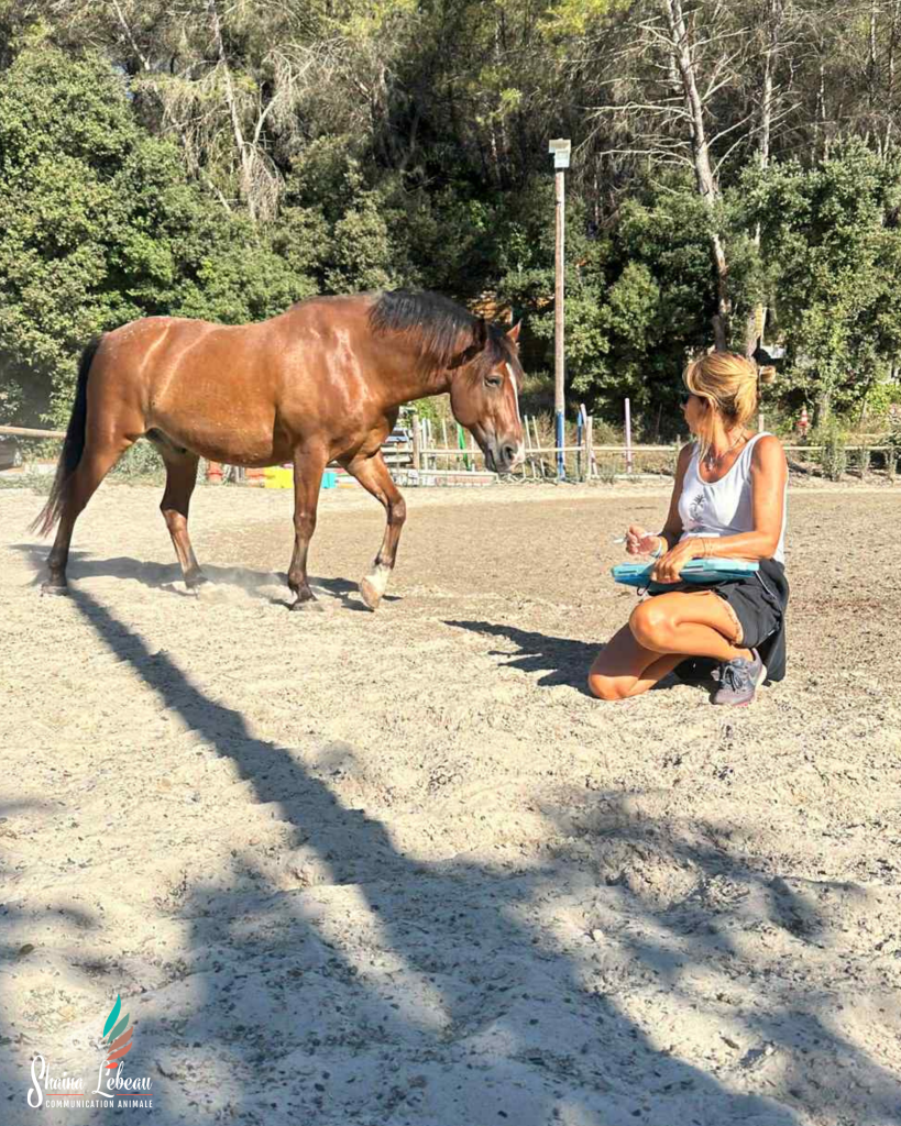 Mon travail, en tant que communicatrice animale et formatrice au sein de mon école “La Goutte d’Eau du Colibri”, est d’accompagner les humains pour qu’ils retrouvent cette capacité, en douceur, à leur rythme.